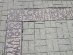 The sidewalk is marked where the walls of the Jewish Ghetto once stood.